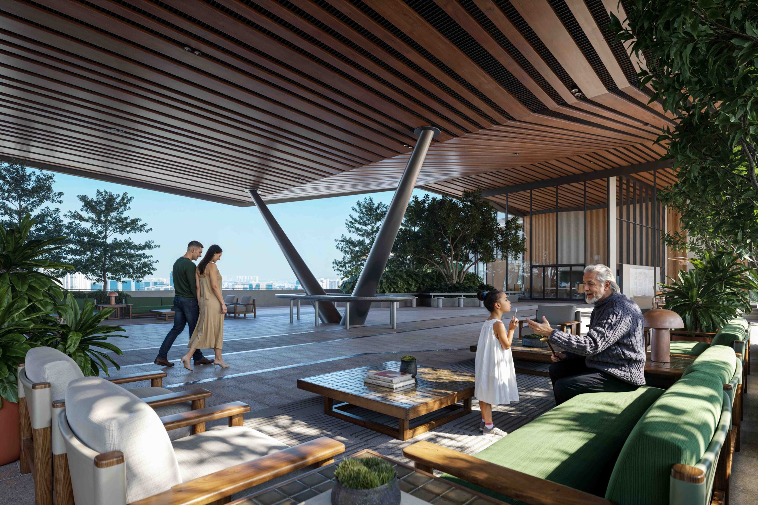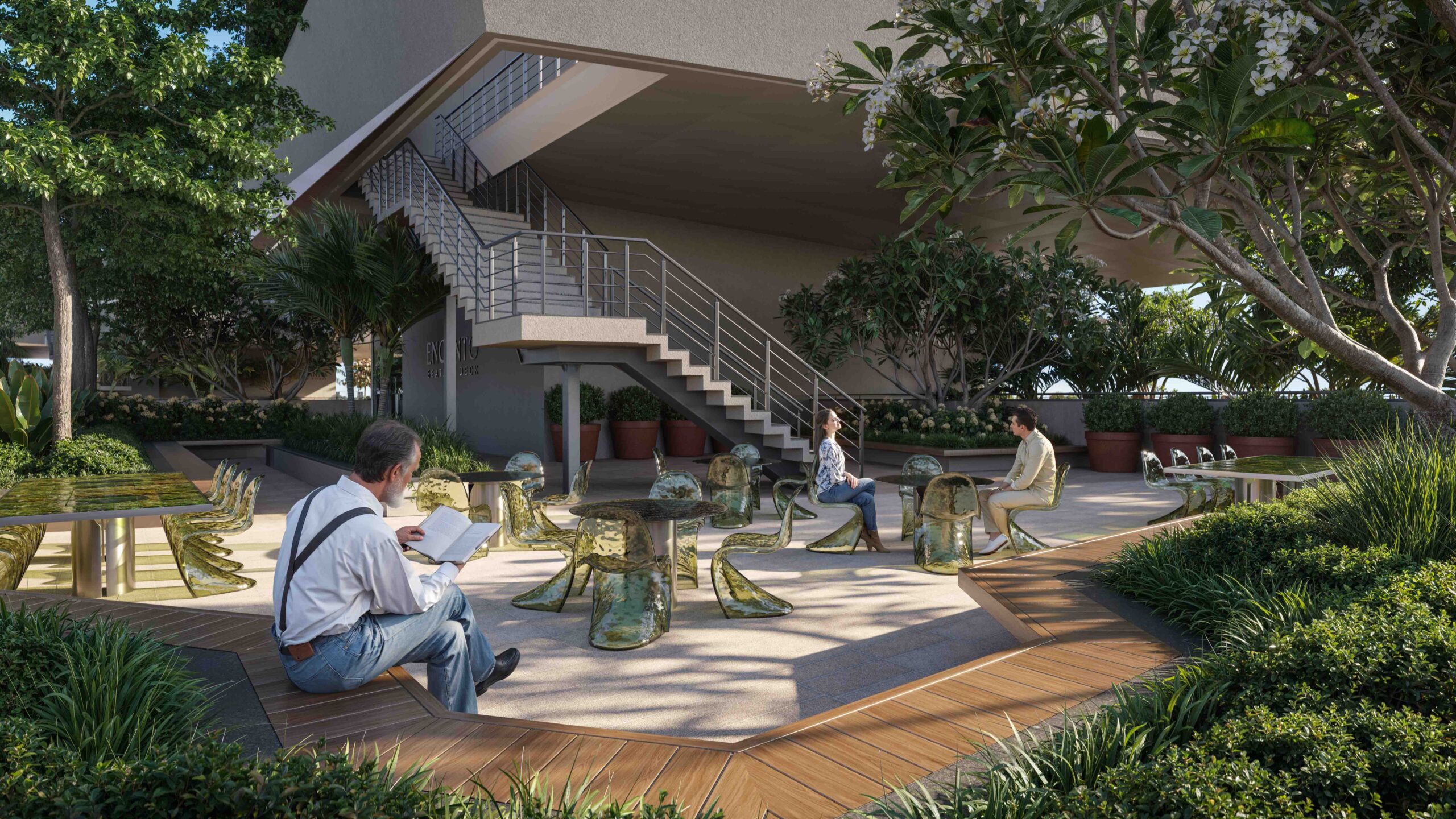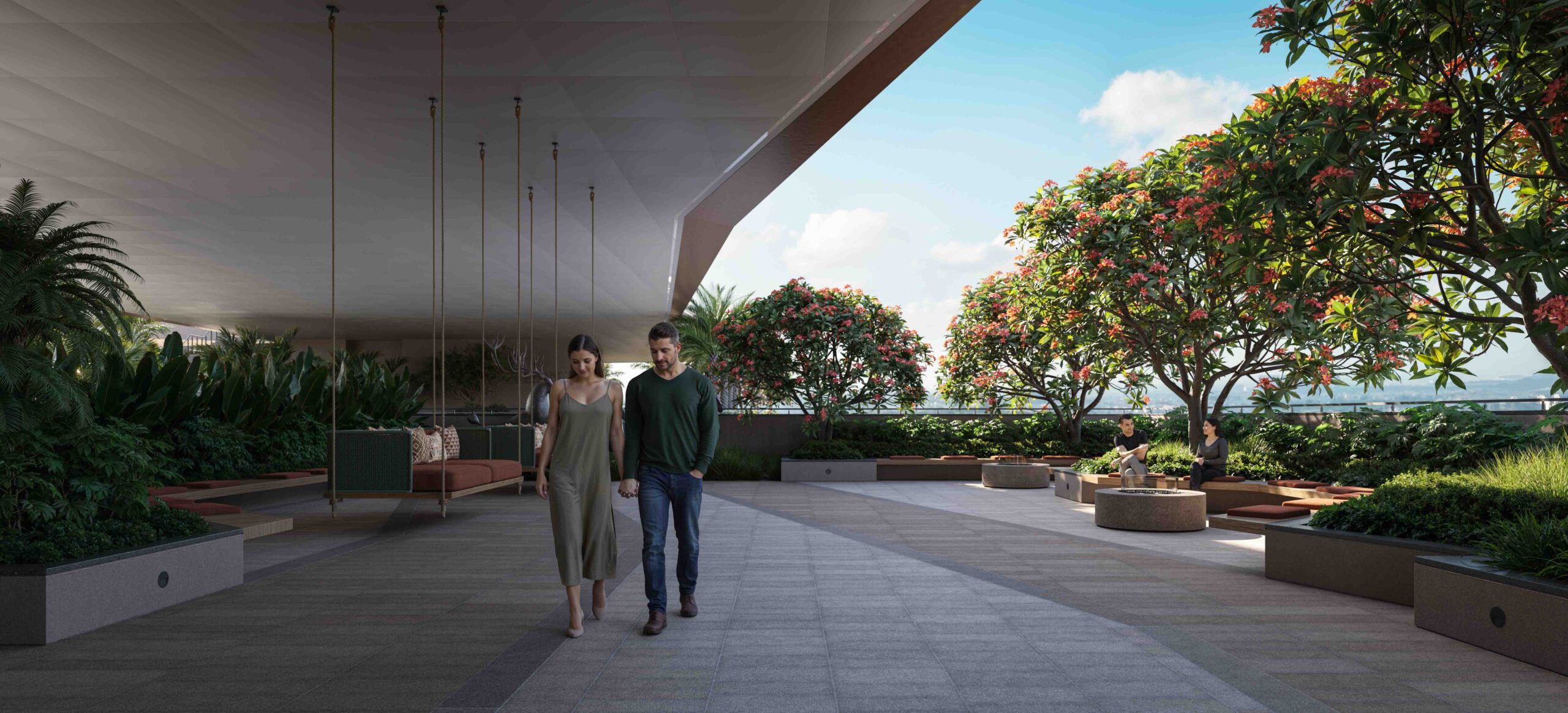 A five-layered landscape with terrace decks, wraparound balconies, and lush sit-outs blends indoors with outdoors, offering serene views and vibrant amenities at every level.